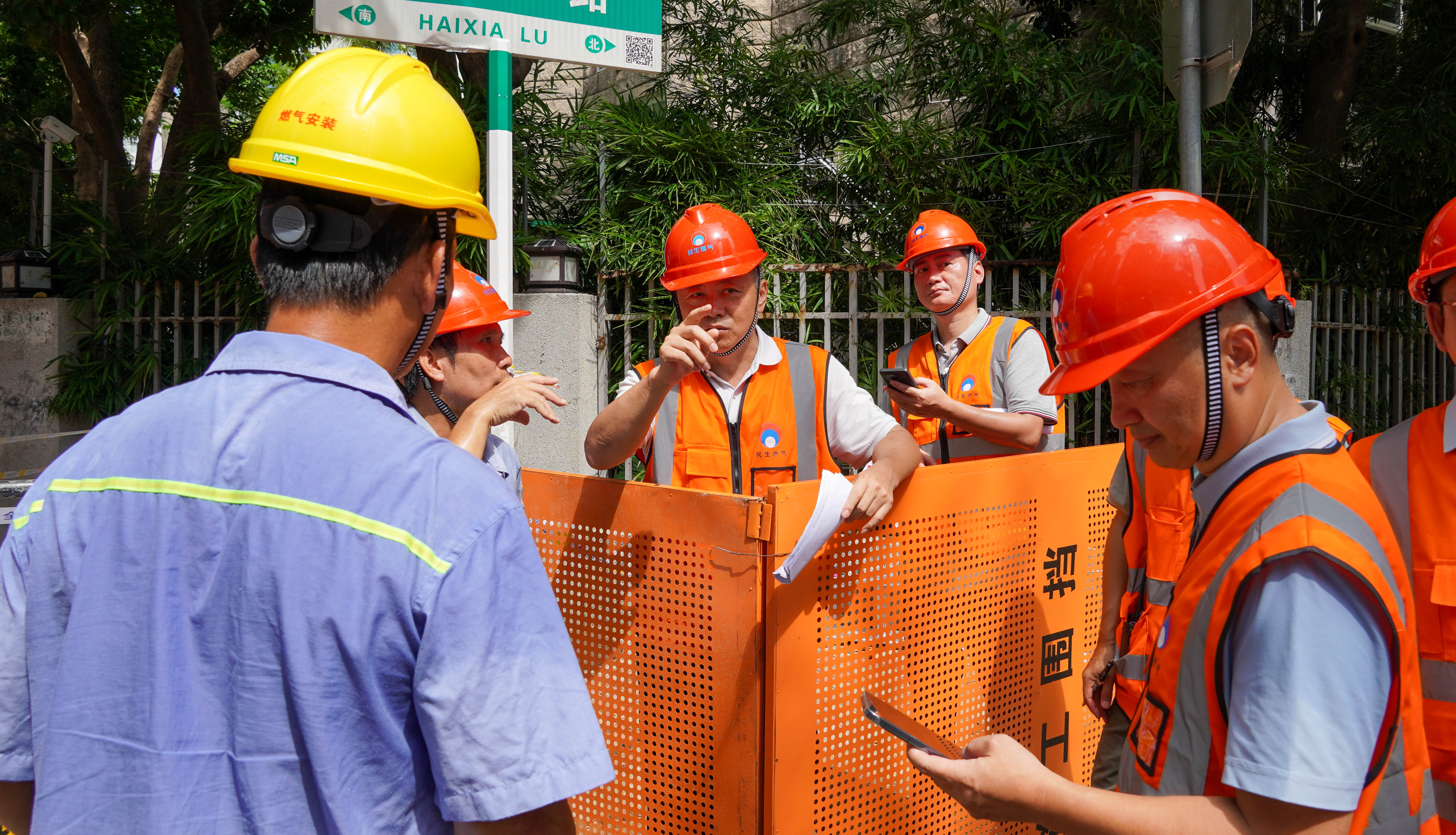 為檢驗并提高突發事故應急處置能力,7月9日上午,海南民生燃氣在??谑泻5閸u三東路與和平大道交叉口一施工工地開展燃氣管網事故應急搶險演練。公司總裁王奮、副總裁毛建中、符德任、楊紅日、林少海等領導現場觀摩指導,安技部、客戶管理部等相關人員參與本次演練。